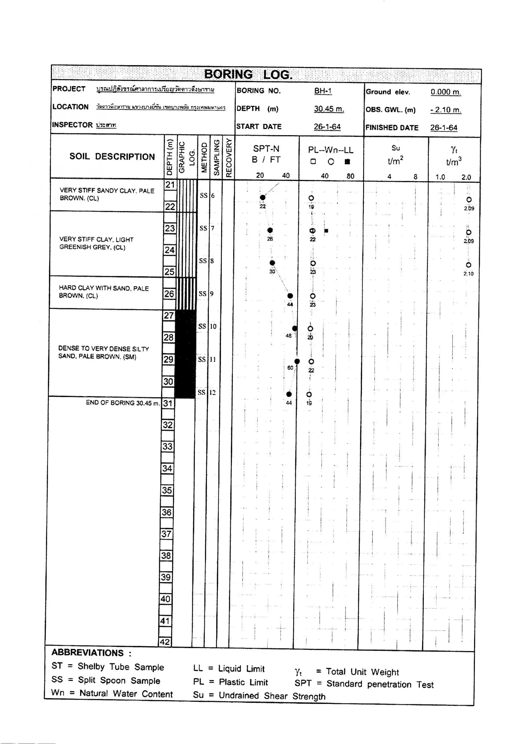 รูปที่ 1 ตาราง Soil boring test