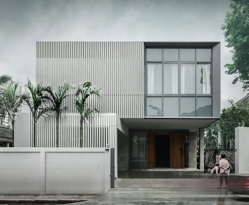 รอบ ๆ อาคารตกแต่งด้วยระแนงสีขาวและช่องหน้าต่าง ซึ่งช่วยให้สามารถชมวิวได้จากภายใน ไปพร้อมกับการรักษาความเป็นส่วนตัว ในขณะเดียวกันก็เป็นการเปิดช่องให้แสงสามารถส่องเข้ามายังพื้นที่ต่าง ๆ ได้ตลอดทั้งวัน อีกทั้งยังช่วยให้ภายนอกมีความโดดเด่นและดูโมเดิร์น