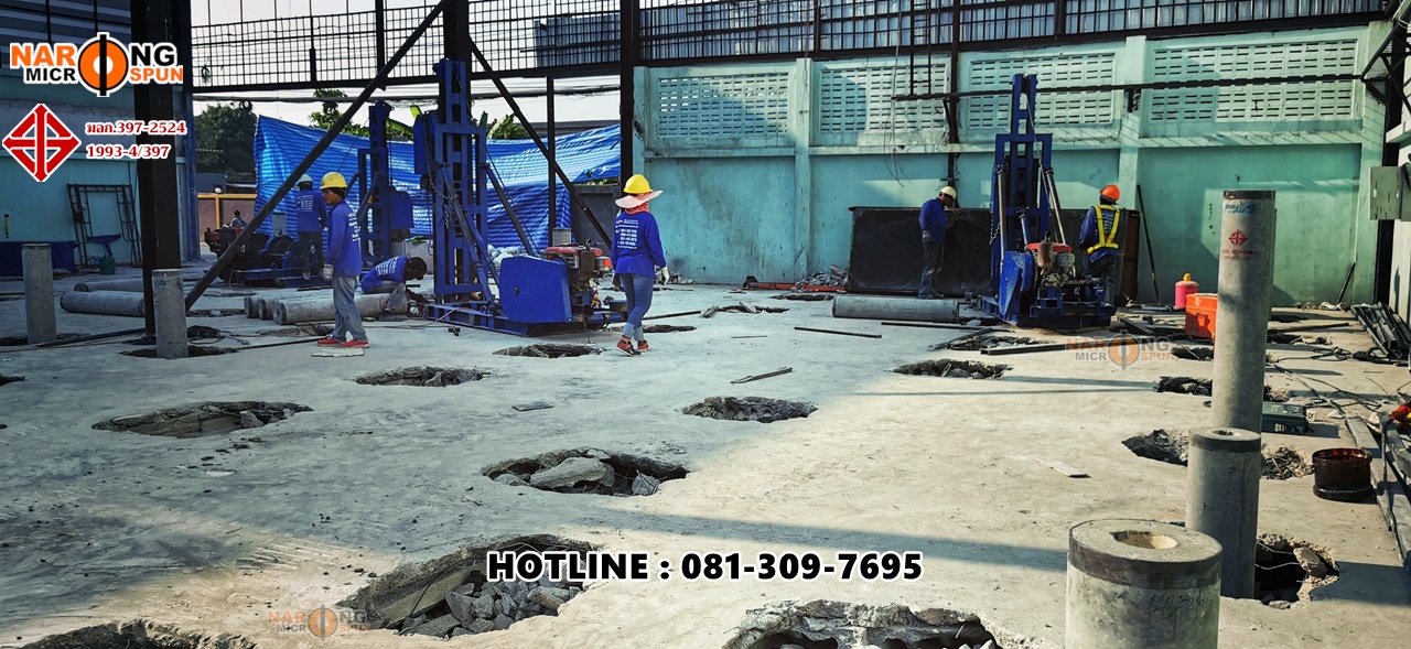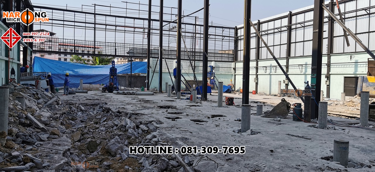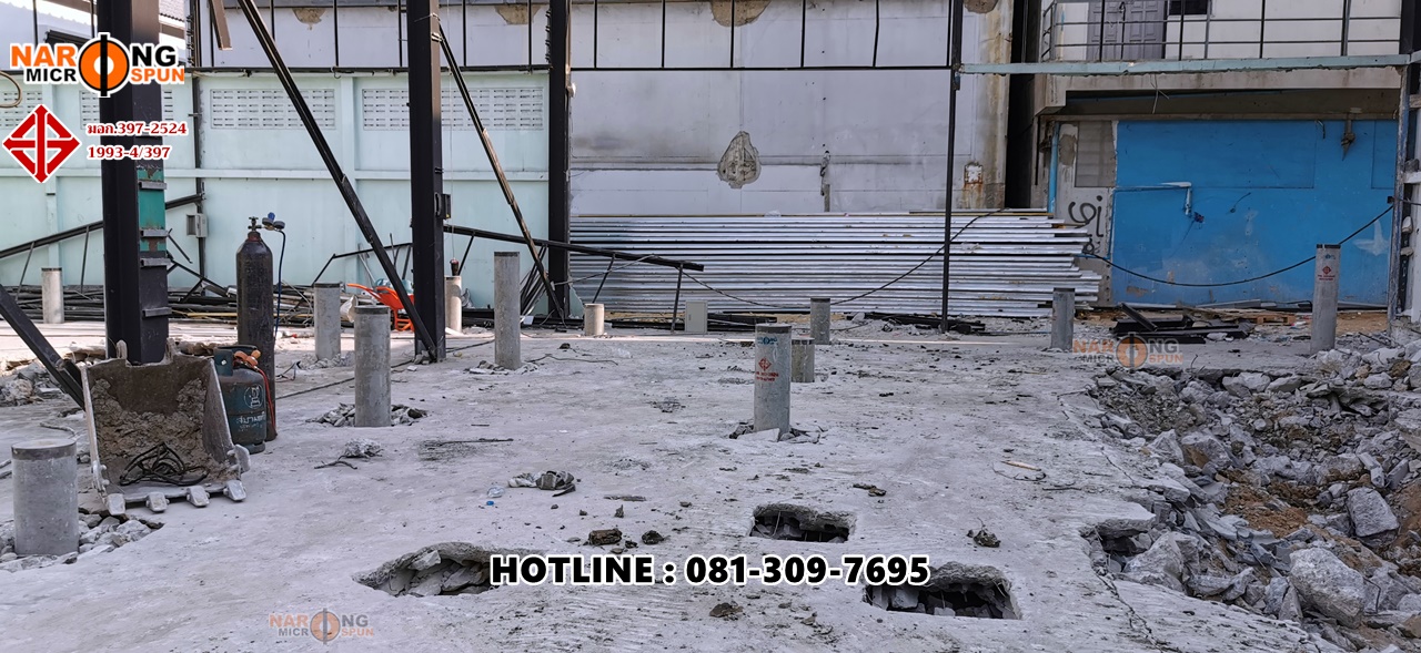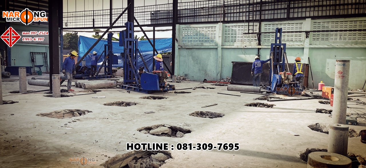 Thai Environment System สุขสวัสดิ์ 78 กับโครงการปรับปรุงโครงสร้าวอาคารใหม่ ตอกเสาเข็มสปันไมโครไพล์ ขนาดเส้นผ่าศูนย์กลาง 25 เซนติเมตร รับน้ำหนักปลอดภัยไม่น้อยกว่า 40 ตัน/ต้น ใช้ SafetyFactor 2.5 เท่า เทียบกับรายการคำนวณ Danish’s Formular ที่ความลึกประมาณ 24 – 28 เมตร