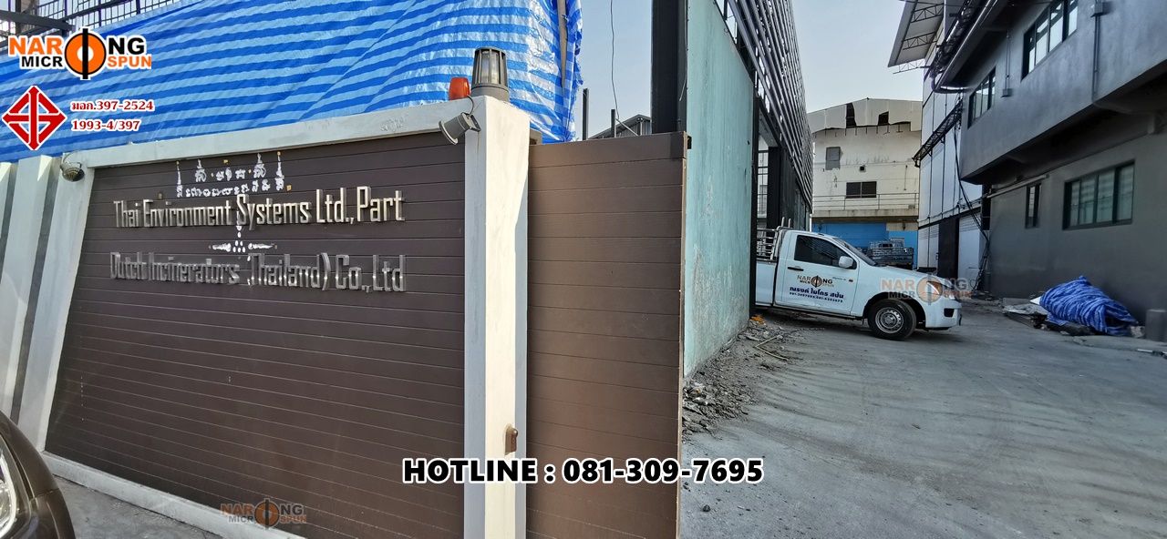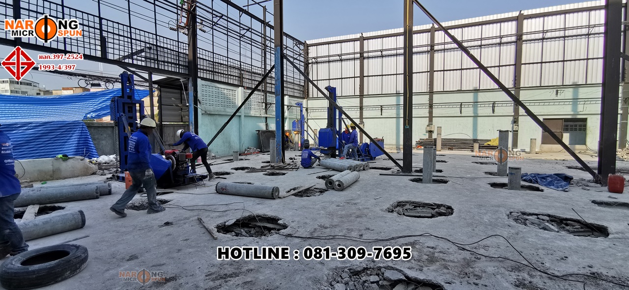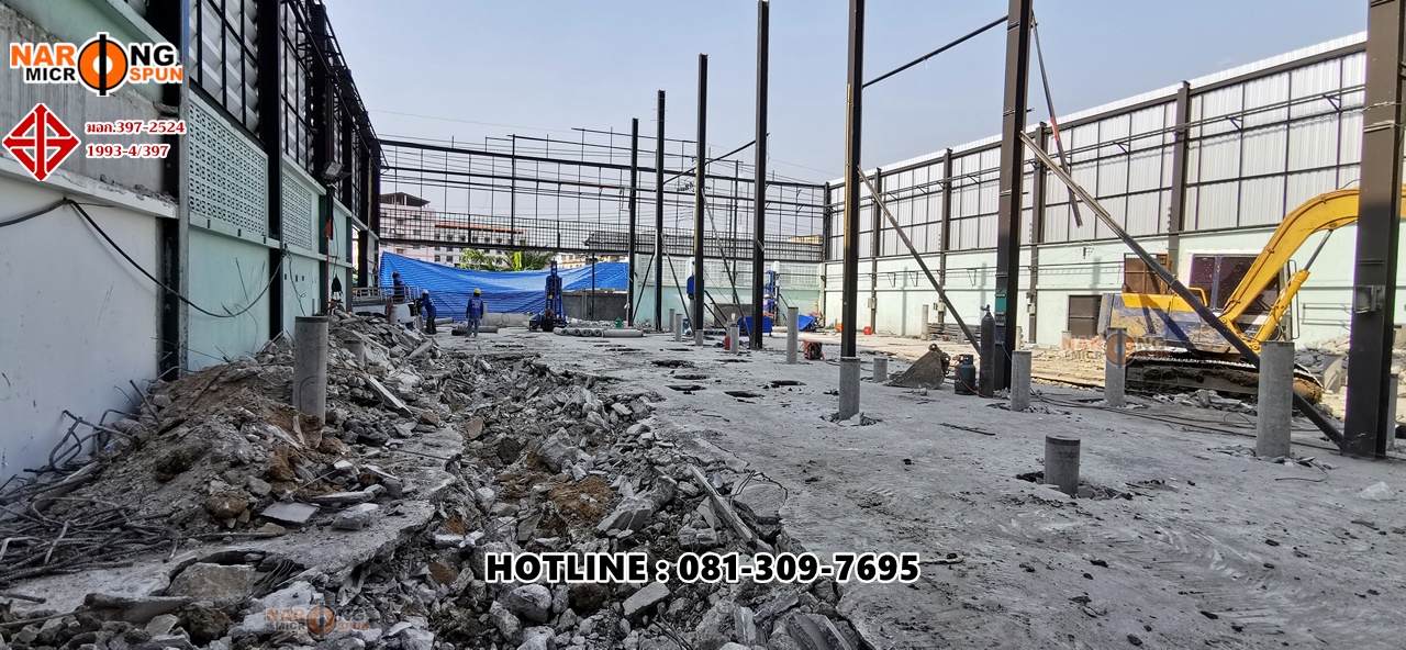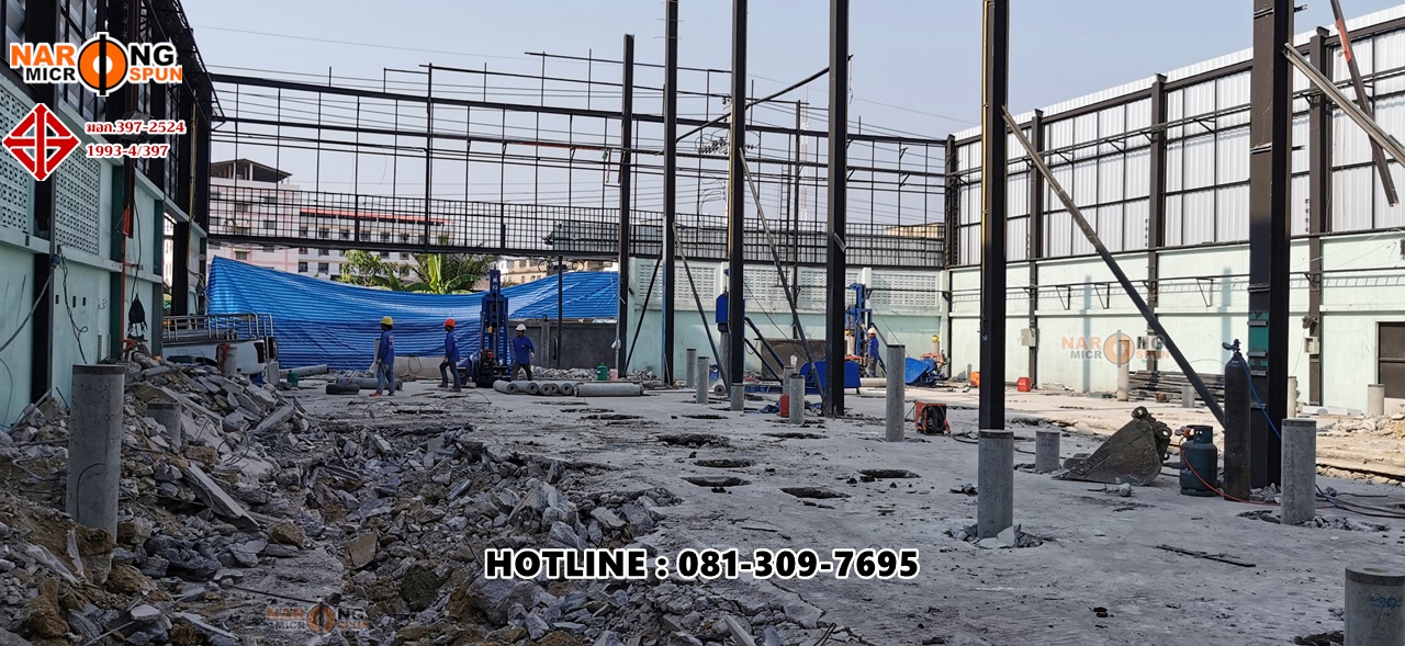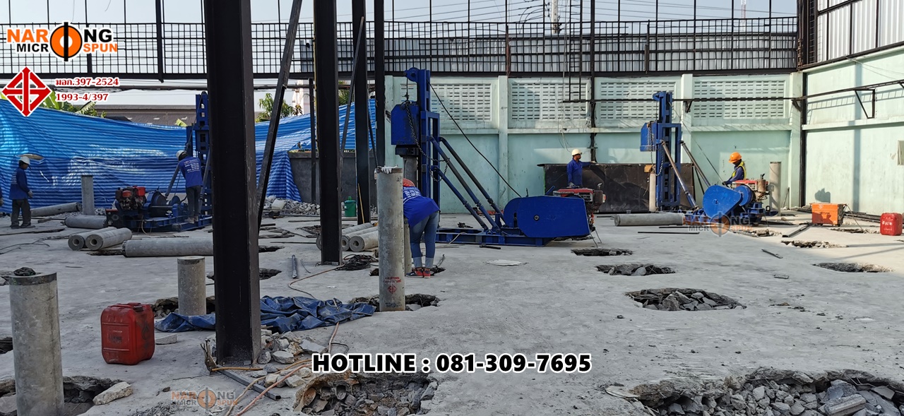 Thai Environment System สุขสวัสดิ์ 78 กับโครงการปรับปรุงโครงสร้าวอาคารใหม่ ตอกเสาเข็มสปันไมโครไพล์ ขนาดเส้นผ่าศูนย์กลาง 25 เซนติเมตร รับน้ำหนักปลอดภัยไม่น้อยกว่า 40 ตัน/ต้น ใช้ SafetyFactor 2.5 เท่า เทียบกับรายการคำนวณ Danish’s Formular ที่ความลึกประมาณ 24 – 28 เมตร