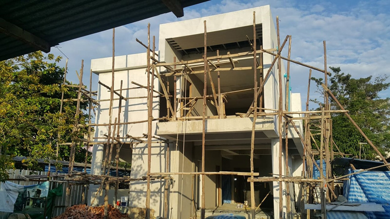 – ขั้นตอนตั้งแต่เริ่มลงเสาเอก ขึ้นโครงสร้าง จนเป็นรูปเป็นร่าง และติดตั้งไฟฟ้าสวยงาม ซึ่งคอนเซ็ปต์ของบ้าน คือ “ทางผ่านของอากาศ” เนื่องจากบ้านหลังเดิมมีลมพัดผ่านตัวบ้านได้ จึงอยากเก็บความรู้สึกนั้นไว้ ฉะนั้นจึงออกแบบเน้นพื้นที่เปิด ทั้งบริเวณกลางบ้าน และตามประตู-หน้าต่างหลายมุม โดยจะติดมุ้งลวดเพื่อป้องกันฝุ่น ยุง และแมลงแทน ไม่เพียงเท่านั้นแต่ยังเปิดช่องกลางบ้านเพื่อเชื่อมต่อชั้นบนกับชั้นล่าง รวมถึงช่วยทำให้ลมกระจายตัวได้ทั่วบ้านด้วย