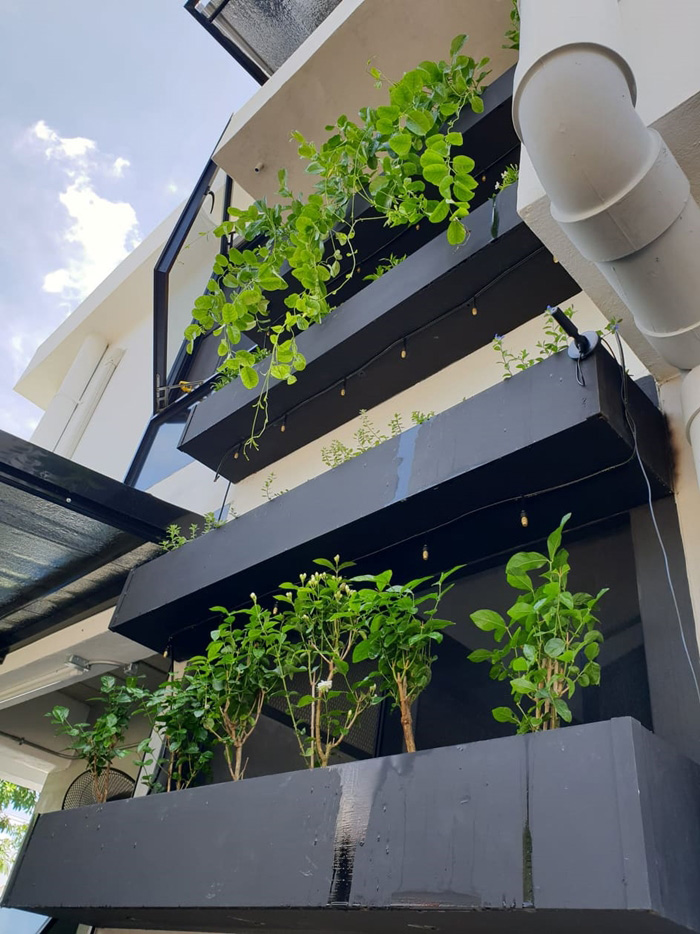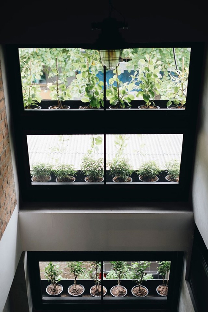 – บันไดเน้นความเท่ แต่ก็มีราวจับเพื่อความปลอดภัย โดยระหว่างทางเดินสามารถมองเห็นชั้นวางต้นไม้ชัดเจน