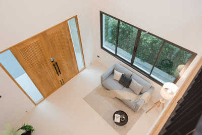 ชั้นล่างของบ้านเดี่ยวหลังนี้ประกอบด้วย ห้องนั่งเล่นแบบ Double Space ที่ช่วยให้พื้นที่ดูโปร่ง โล่ง ไม่อึดอัด เชื่อมต่อกับส่วนกินข้าวและ Pantry ครัวเบาพร้อมห้องเก็บของ ถัดออกไปก็เป็นห้องครัวไทยและโซนซักล้างบริเวณด้านหลัง และห้องอเนกประสงค์ที่สามารถปรับการใช้งานได้ตามใจ โดยทุกห้องตกแต่งด้วยสีขาวและเฟอร์นิเจอร์ไม้เป็นหลัก และมีหน้าต่างทุกจุด ช่วยให้แสงธรรมชาติเข้ามาได้อย่างเต็มที่ แต่ไม่ร้อน พร้อมทั้งช่วยให้บ้านดูสว่างและกว้างขวางขึ้นอีกด้วย