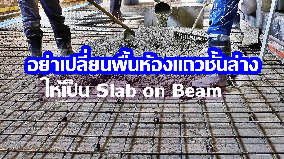 กว่า 99.99% ของห้องแถวในประเทศไทย พื้นชั้นล่างจะเป็น Slab on Ground คือพื้นชั้นล่าง ถ่ายน้ำหนัก ของพื้น ลงบนดินโดยตรง (เวลาดินทรุดพื้นห้องก็ทรุดตาม เกิดอาการแอ่นและแตกร้าว) แต่คุณก็อย่าดัน ไปทุบ พื้นเก่าทิ้ง แล้วหล่อพื้นขึ้นใหม่ ให้พื้นไปวางบนคาน (Slab on Beam) เพื่อป้องกันทรุด เชียวนา เพราะทั้งคาน- ตอม่อ- ฐานราก- เสาเข็ม ไม่ได้เตรียมตัวสำหรับน้ำหนักโครงสร้าง-น้ำหนักจร (Life Load & Dead Load) ไว้ อาจทำให้ อาคารคุณวิบัติเอาง่าย ๆ (แล้วชวนห้องอื่นเขาวิบัติตาม เพราะโครงสร้างห้องแถวนั้น ต่อเนื่องกันทุก ๆ ห้อง