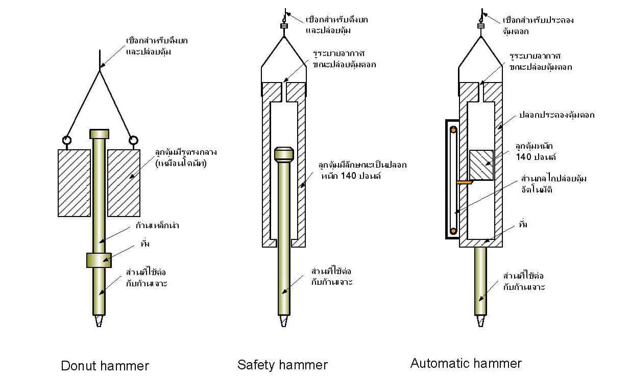 ในการตอกจะตอกให้กระบอกจมลงในดินเป็นระยะ